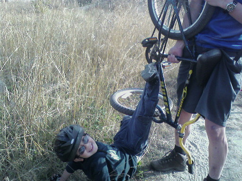 I was riding my bike home from school in Hawaii. I had just taken a test and it was pouring rain. I contemplated just staying in the library until the rain stopped but I just decided to ride home, get wet and then change into dry clothes. Right about in front of the elementary school (if you know Laie) my bike pedal got stuck. My foot was stuck to the pedal. I looked down and it took me a minute to figure out that the bottom of my jeans was wrapped around the pedal 3 times and was now so tight that I could not pedal forward or backward. I was on the side of a busy busy road and in front of a school. Actually he wasn't there that semester but it was right in front of MM's house.